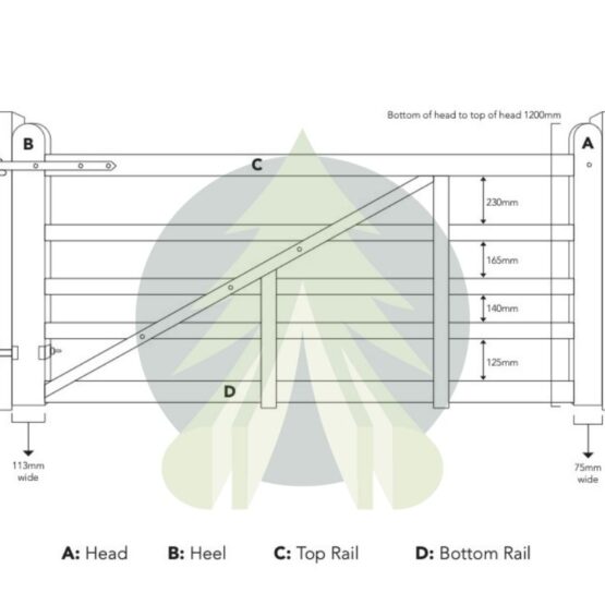 The standard height is 1.2m, measuring from the top to the bottom of the heel of the gate; but heights can be made to measure. The design can also be adapted to feature a diamond brace.