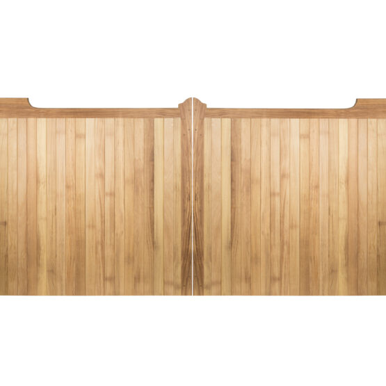 Embrace quality and assurance with our handcrafted gunstock boarded gates, guaranteed for 5 years and tailored to your specifications. Manufactured from carefully selected tongue and groove redwood boards, each gate boasts a subtle curve at one end.