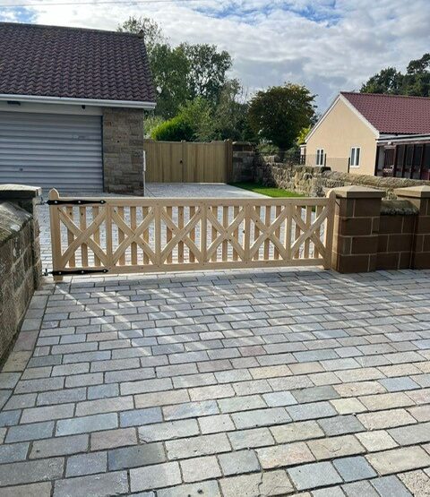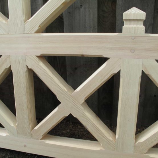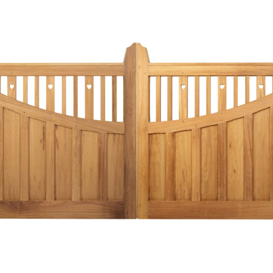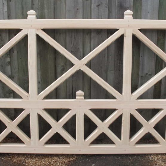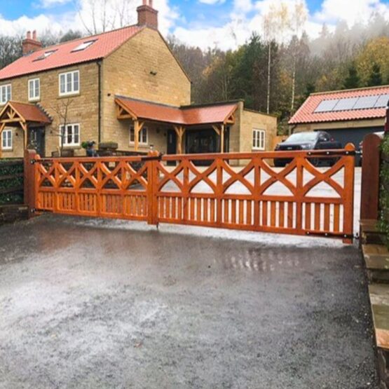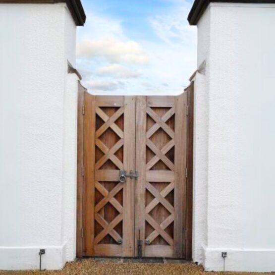Our Ward gates are made-to-measure. A stunning entrance gate, crafted from redwood. Adorned with chamfered crosses and distinguished by shaped heads and heels, this gate is a bespoke statement piece that adds elegance to your driveway.