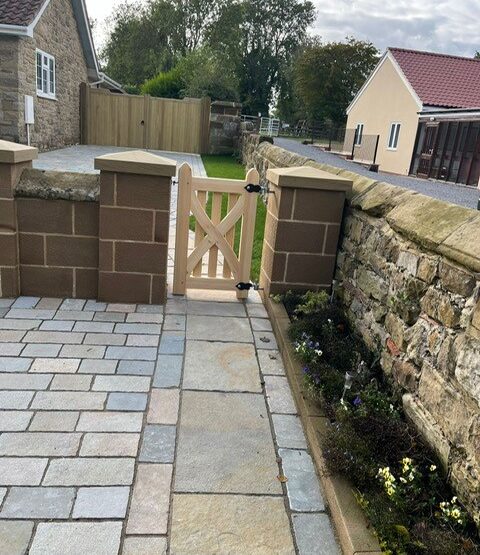 Elevate your entrance with our Welburn gate, available in either redwood or iroko. This gate showcases large curved and chamfered crosses against planed palings, complemented by shaped heads and heels. Its stylish aesthetic ensures that it enhances the appeal of any entrance, looking equally stunning from both sides. Tailored to your specifications, this gate can be crafted in any size, made to measure.